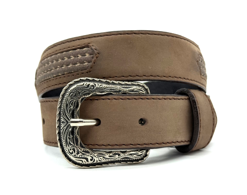 Cinturón de piel grabado con forro de cuero recuperado, detallado con cordón Italia-Marfil.